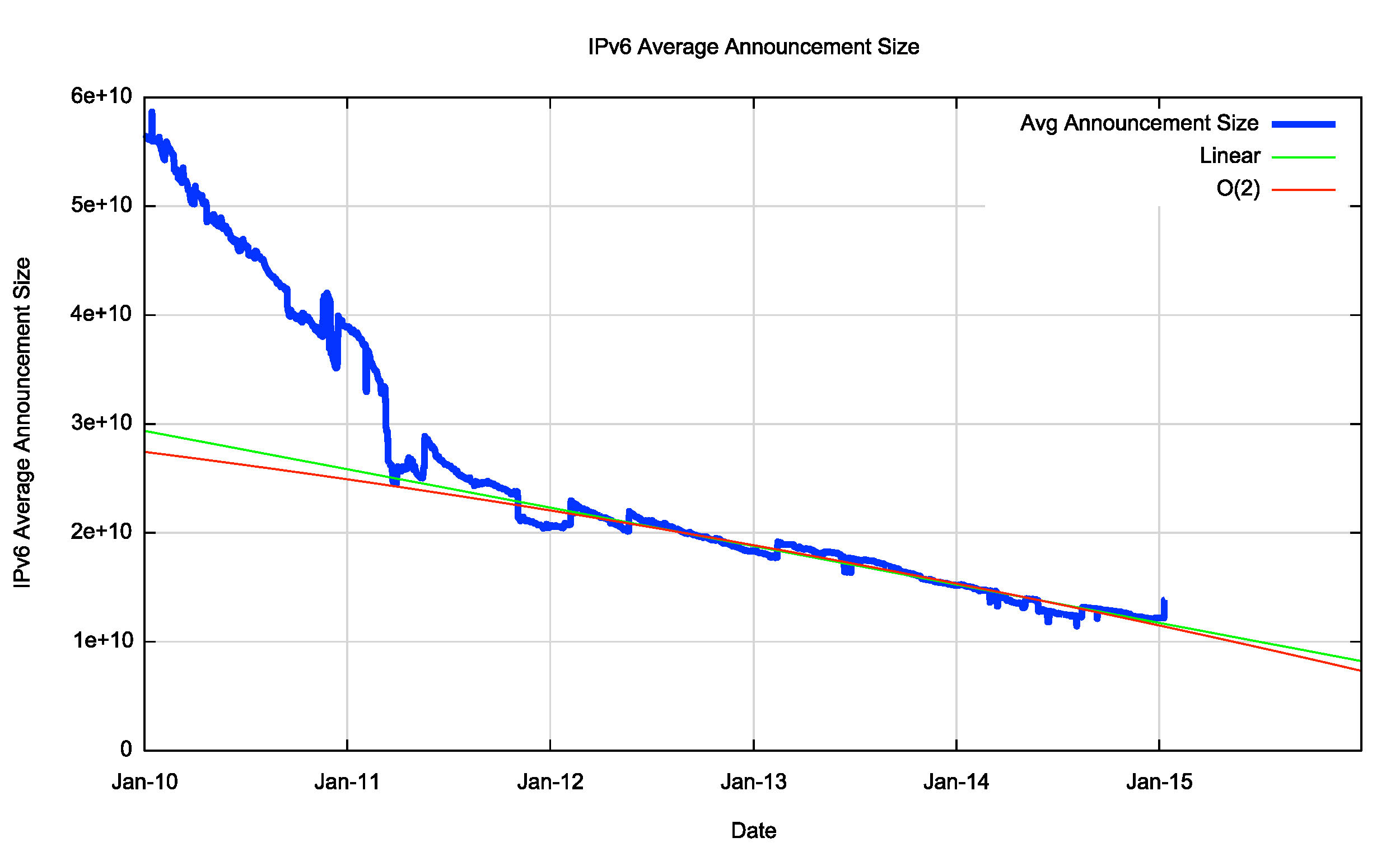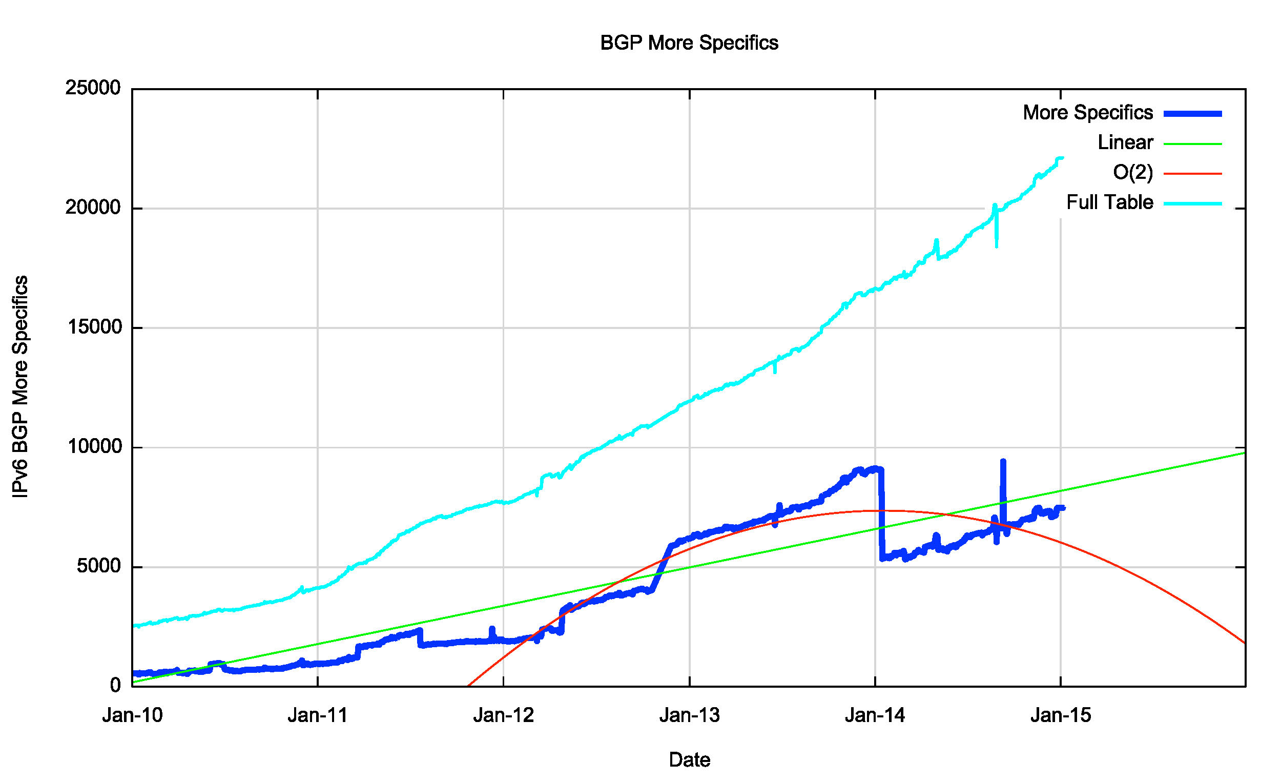The same technique can be used for the IPv6 routing table. Figure 21 shows the data set for BGP from the 1st January 2010 until January 2015.