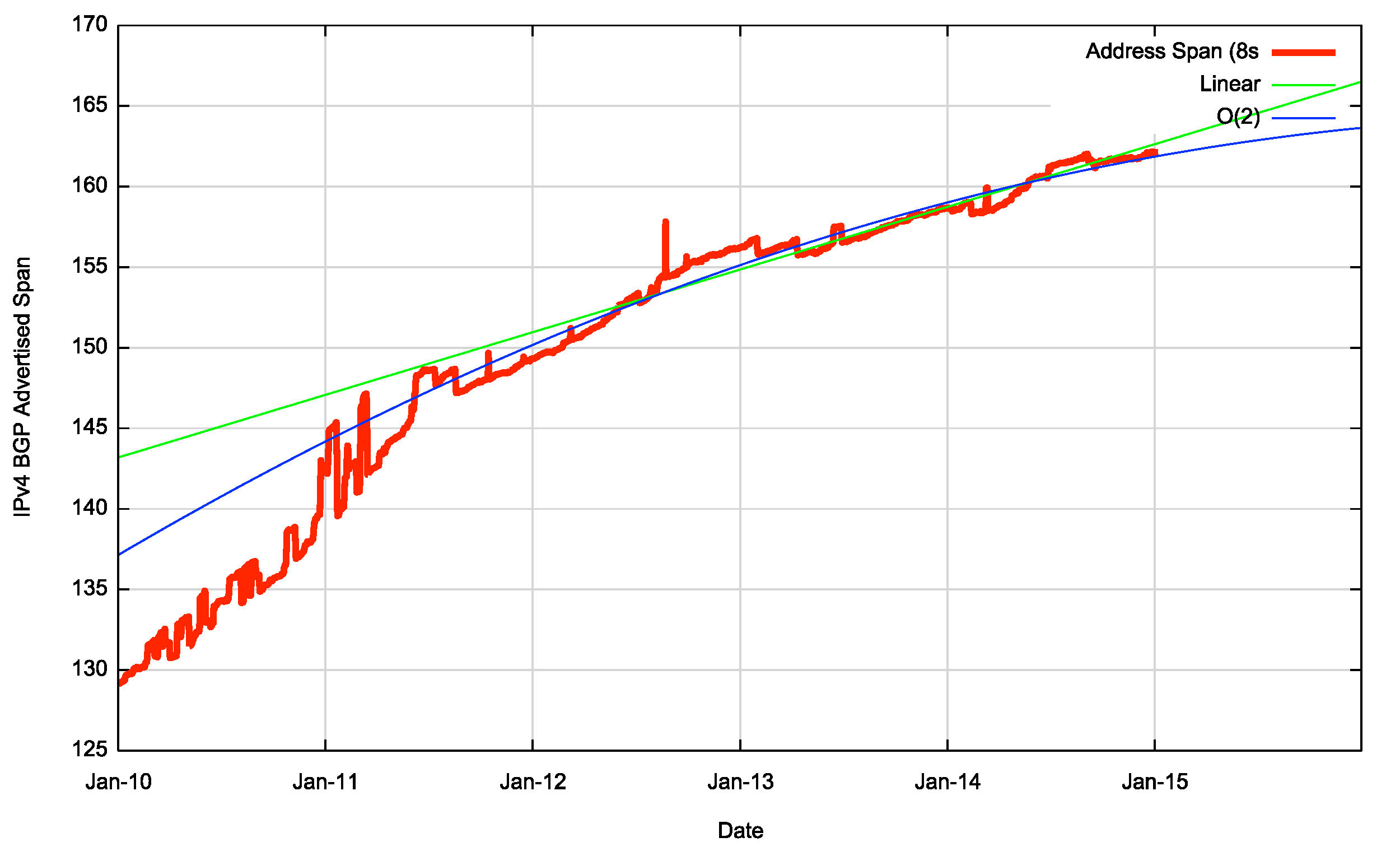 Address Span (/8s)    149.3    156.2    158.6162.1    2%    2%