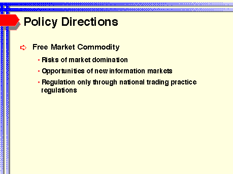 - Free Market Commodity Risks of market domination Opportunities of new information markets Regulation only through national trading practice regulations