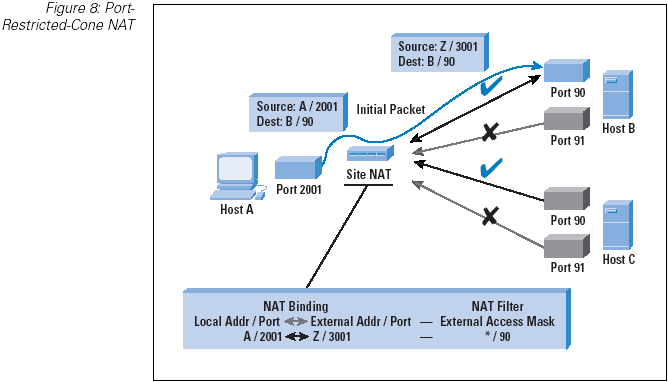 We have already encountered the symmetric NAT, where the NAT mapping refers specifically to the